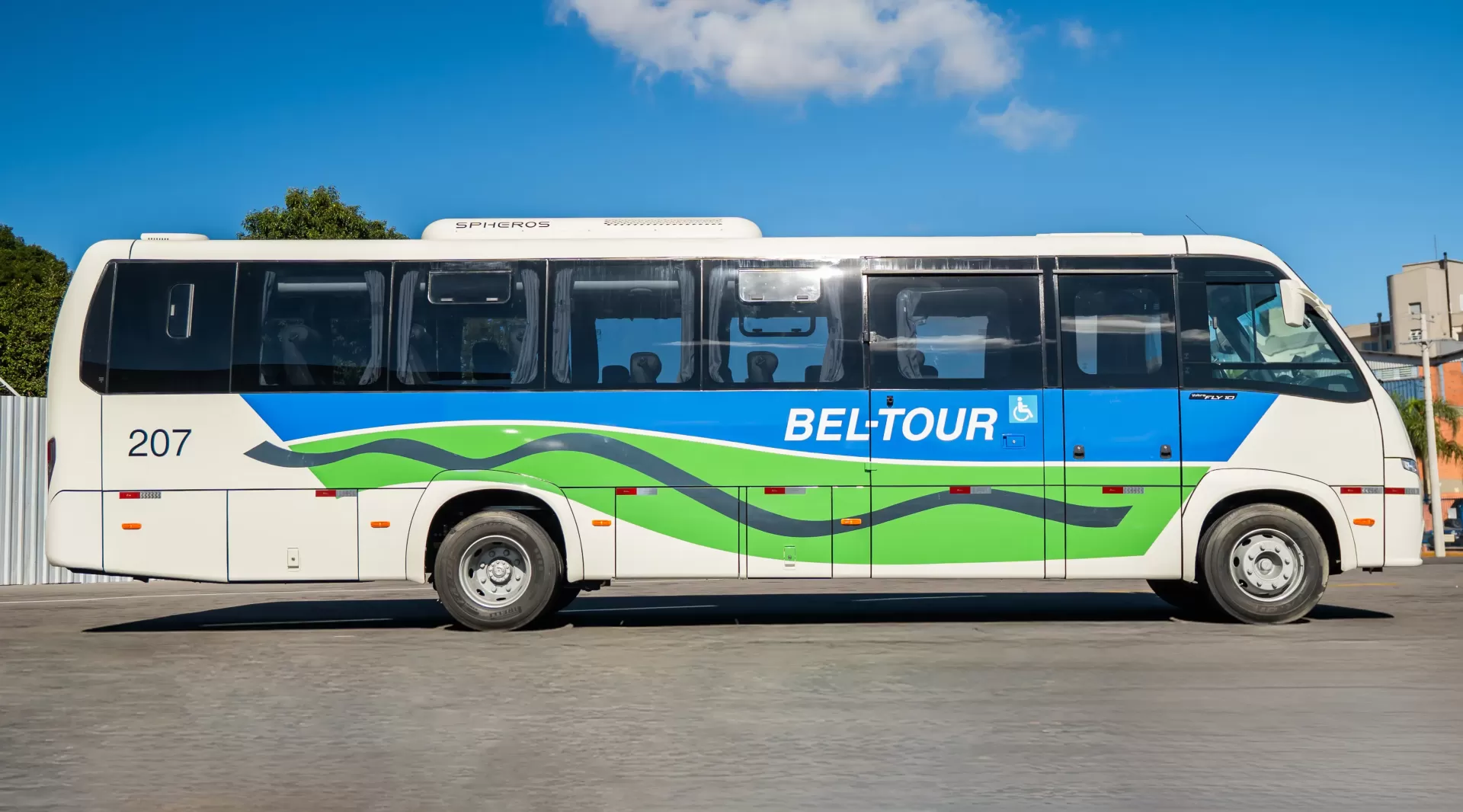 Com atuação desde 1963, a Bel‑Tour atende fretamento contínuo (transporte de colaboradores para empresas e órgãos públicos) e fretamento eventual ou turístico (excursões, passeios, congressos, eventos e visitas pontuais). Cliente Marcopolo e Volare há 12 anos, opera modelos Fly 9 e Fly 10 Executivo.